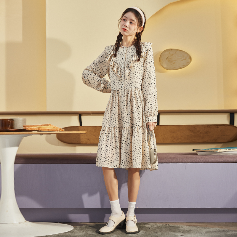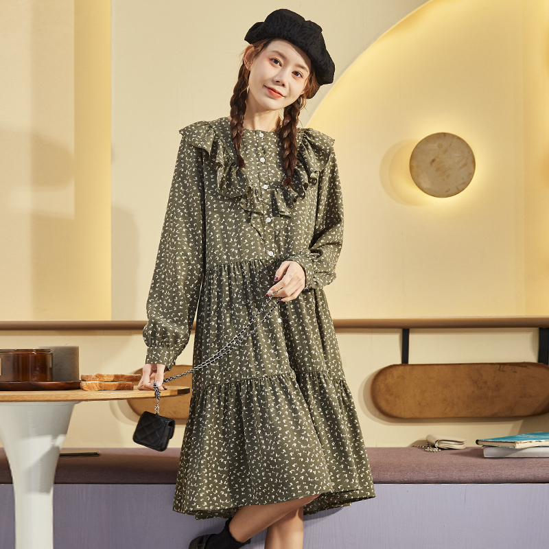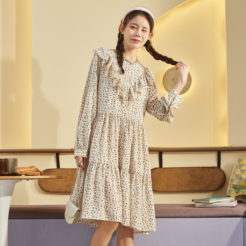 百褶潮流裙 宽松森系外穿韩版 唐狮碎花连衣裙春夏女新款 长袖
