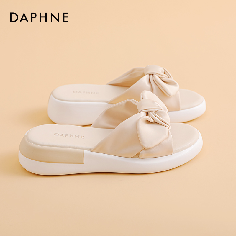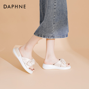 女外穿 凉拖鞋 达芙妮一字拖鞋 女夏外穿2025蝴蝶结厚底休闲沙滩凉鞋
