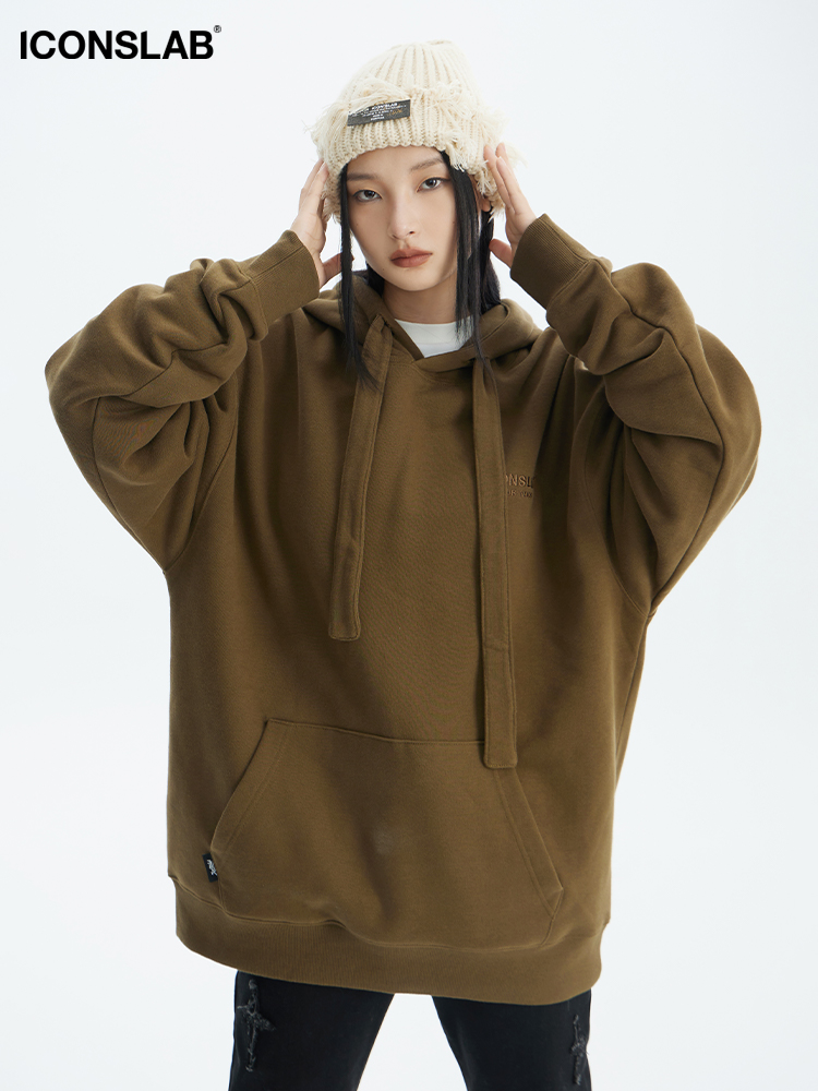 加绒加厚休闲宽松上衣 卫衣外套女秋冬季 美式 复古oversize连帽开衫