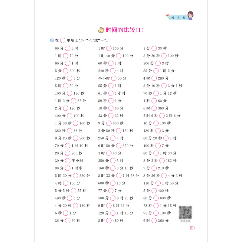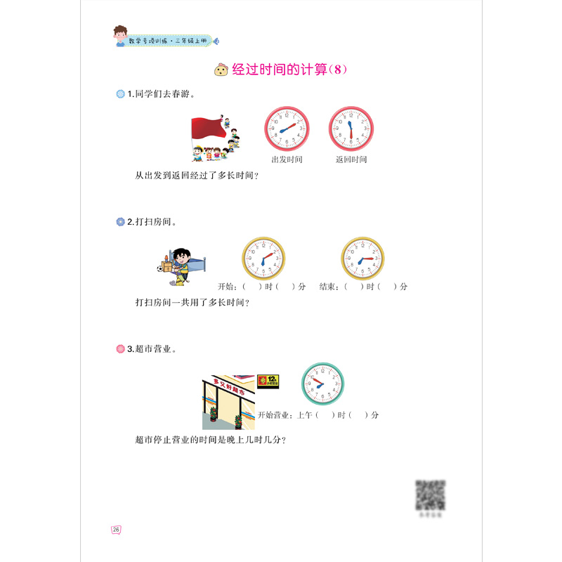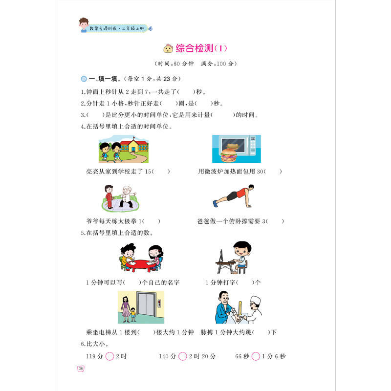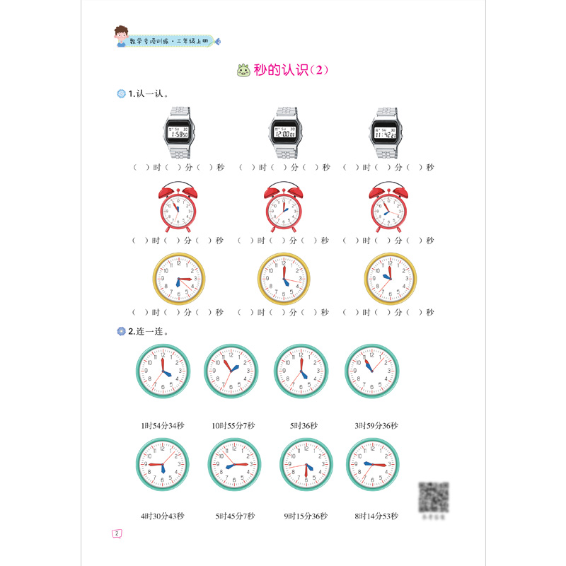 小学3年级上同步课本练习册人教版 秒 上学期数学练习题作业本认识时间和钟表 分 三年级上册数学专项训练:时