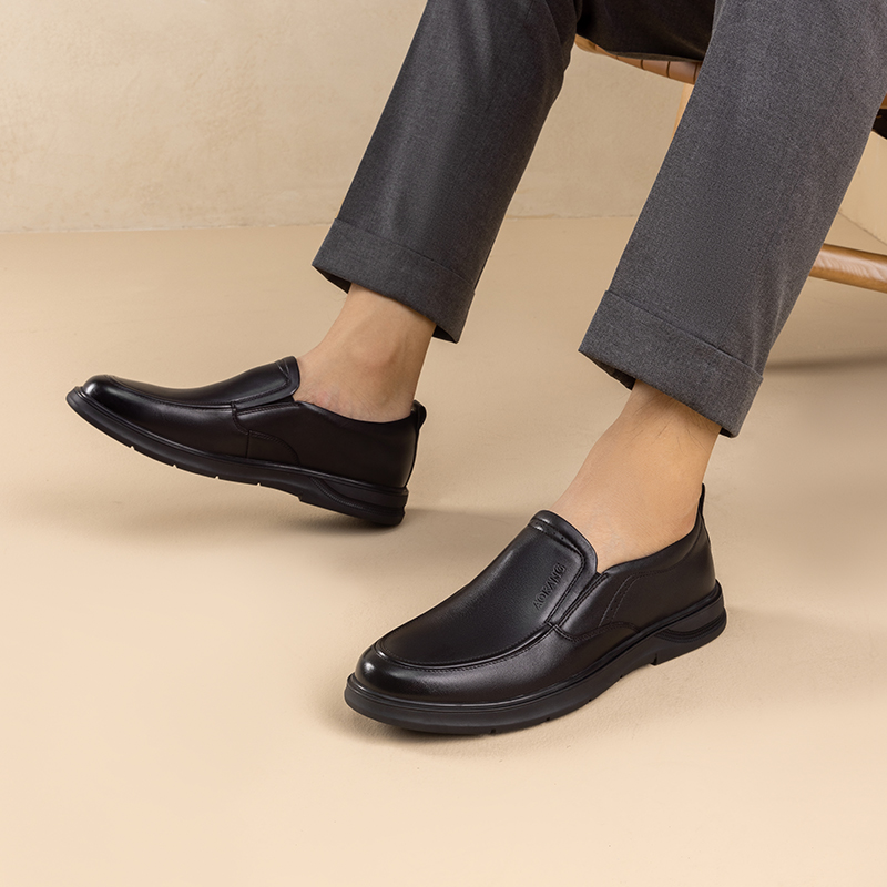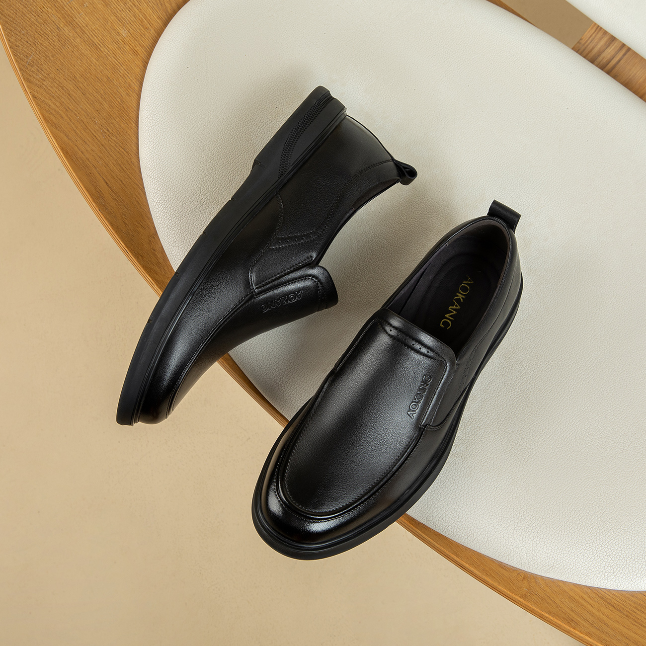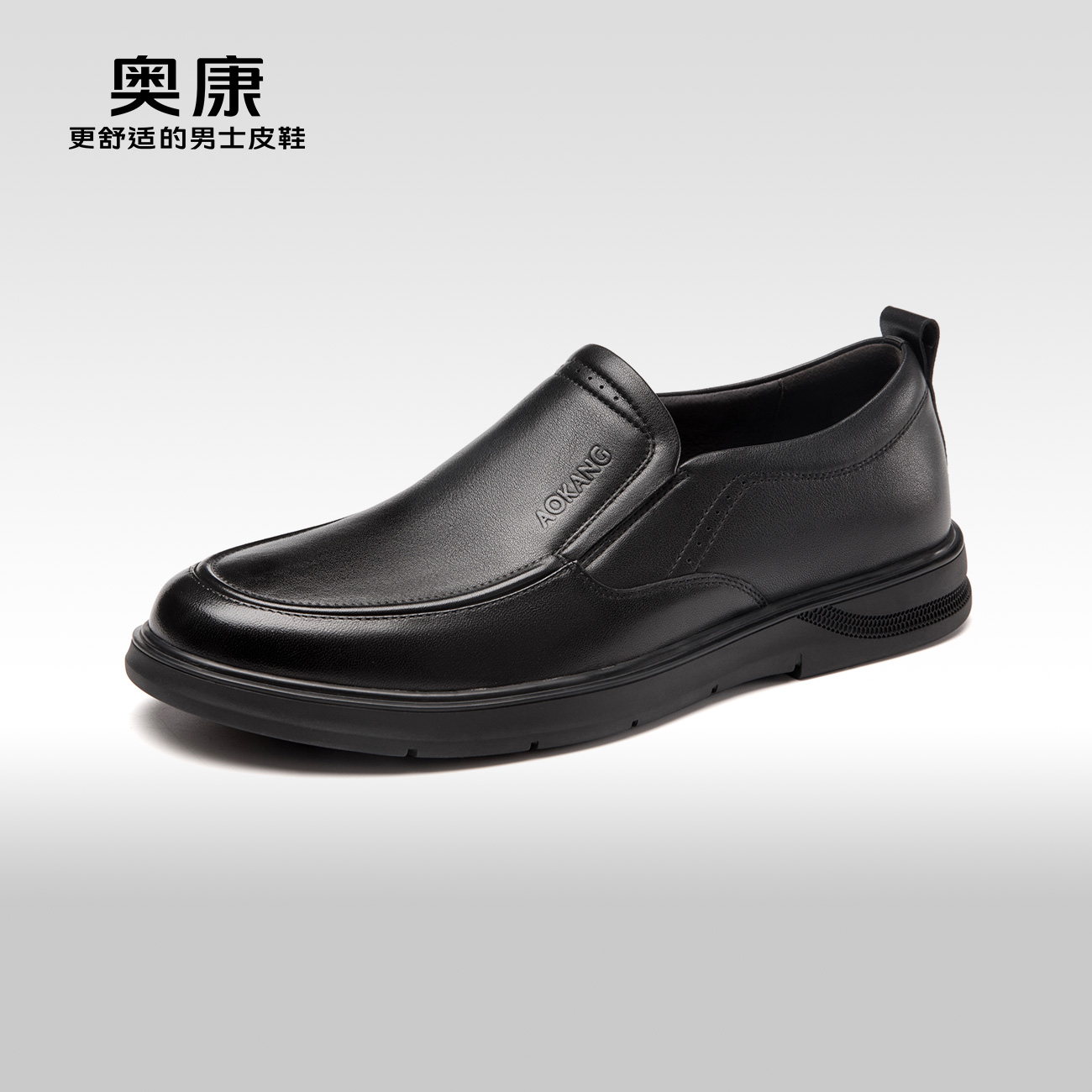 圆头套脚真皮软面舒适爸爸鞋 奥康男鞋 通勤商务休闲皮鞋 时尚 春秋季