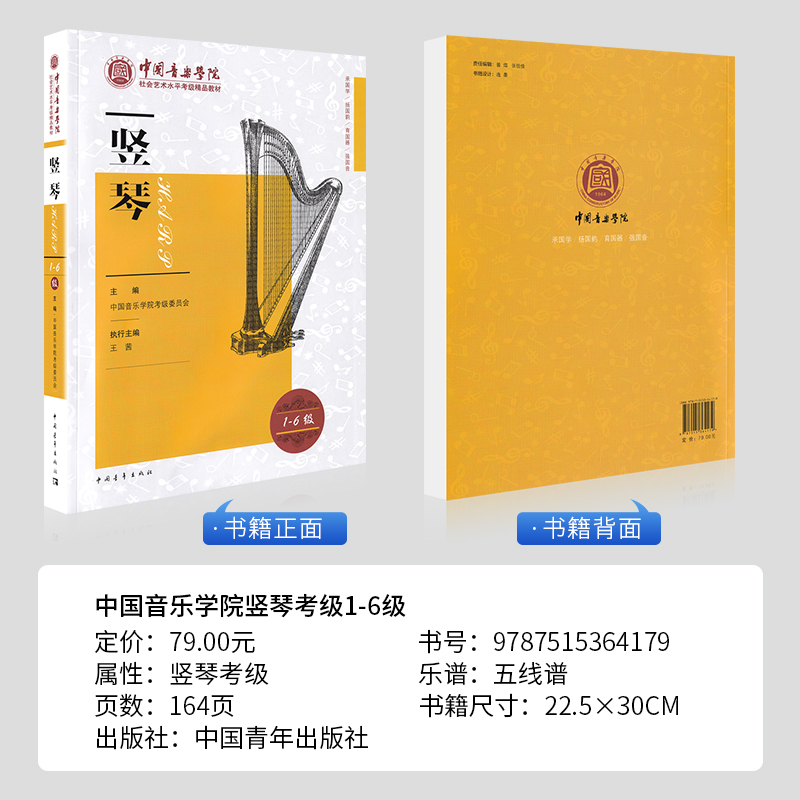 社乐曲集练习曲竖琴教材考级书籍 王茜编中国院考级零基础初学者123456级竖琴教程中国青年出版 中国音乐学院竖琴考级1 6级2024正版