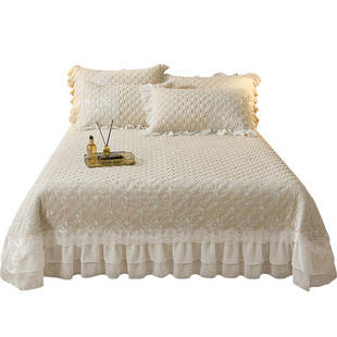 韩式 通用 纯色夹棉床盖单件蕾丝花边A类加厚床单三件套公主风四季