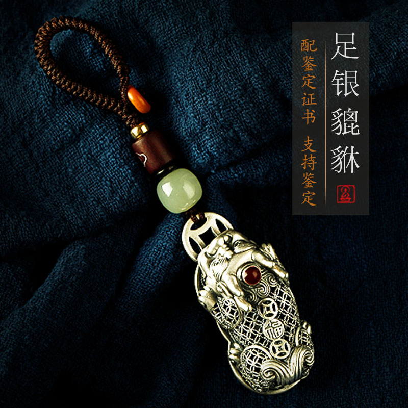 高档999足银貔貅汽车钥匙扣挂件创意礼品男女吊坠复古财皮丘挂饰