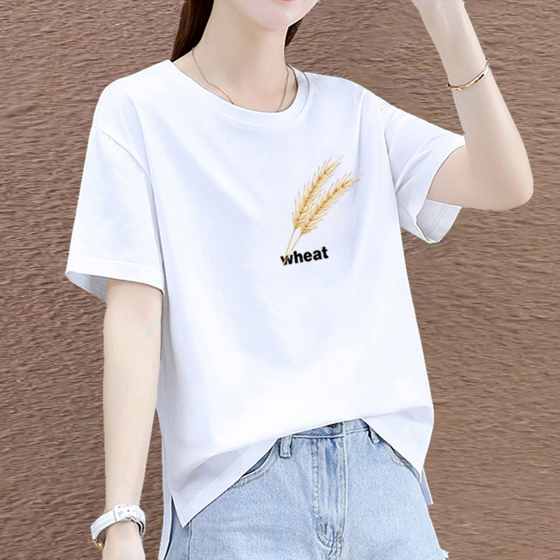 时尚 大码 新款 t恤女夏季 洋气胖mm遮肚子显瘦百搭上衣 宽松纯棉短袖