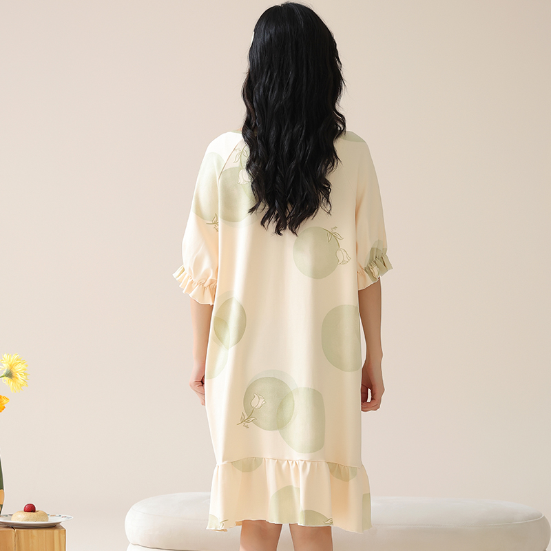 可人儿夏季 带胸垫睡裙夏天全棉学生家居服连衣裙 纯棉睡衣女新中式