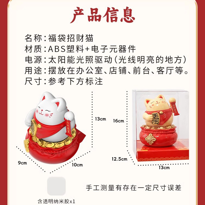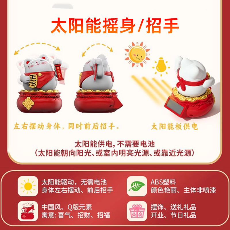 福袋招财猫太阳能汽车摆件2025新款 饰开业礼品 自动招手桌面家居装