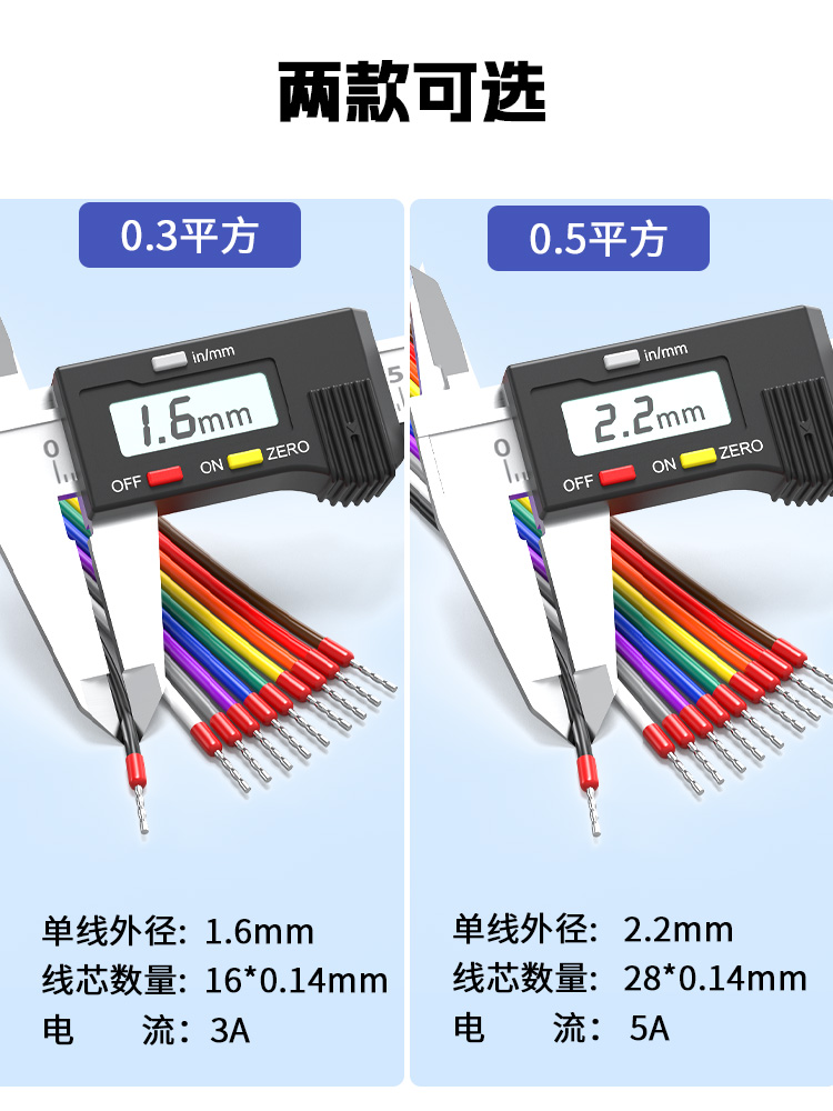 纯铜0.5平方管型端子排线双头U型端子线大电流电源线杜邦线信号线