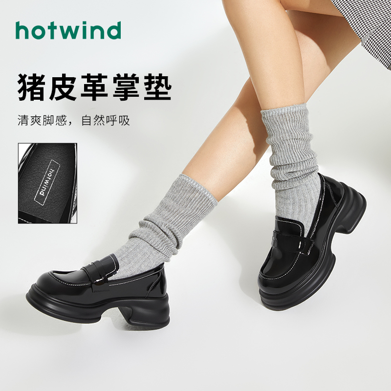 粗跟圆头单鞋 热风秋季 学院风乐福鞋 女士英伦套脚小皮鞋 新款