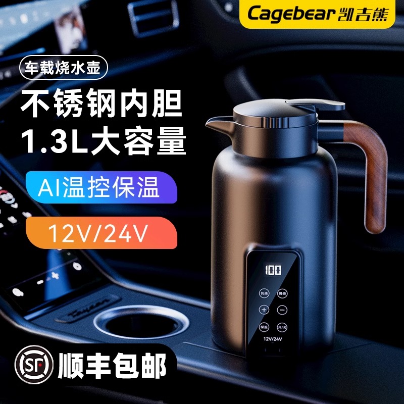 车载烧水壶12v24v通用货车专用保温壶大容量车家两用热水壶不锈钢