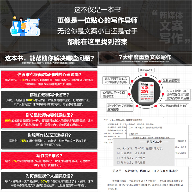 96个技巧 AI应用与自我增值 矩阵式 打造全平台通用新媒体文案写作个性 文案写作指南 新媒体文案写作从小白到高手 化指导 盈利思维