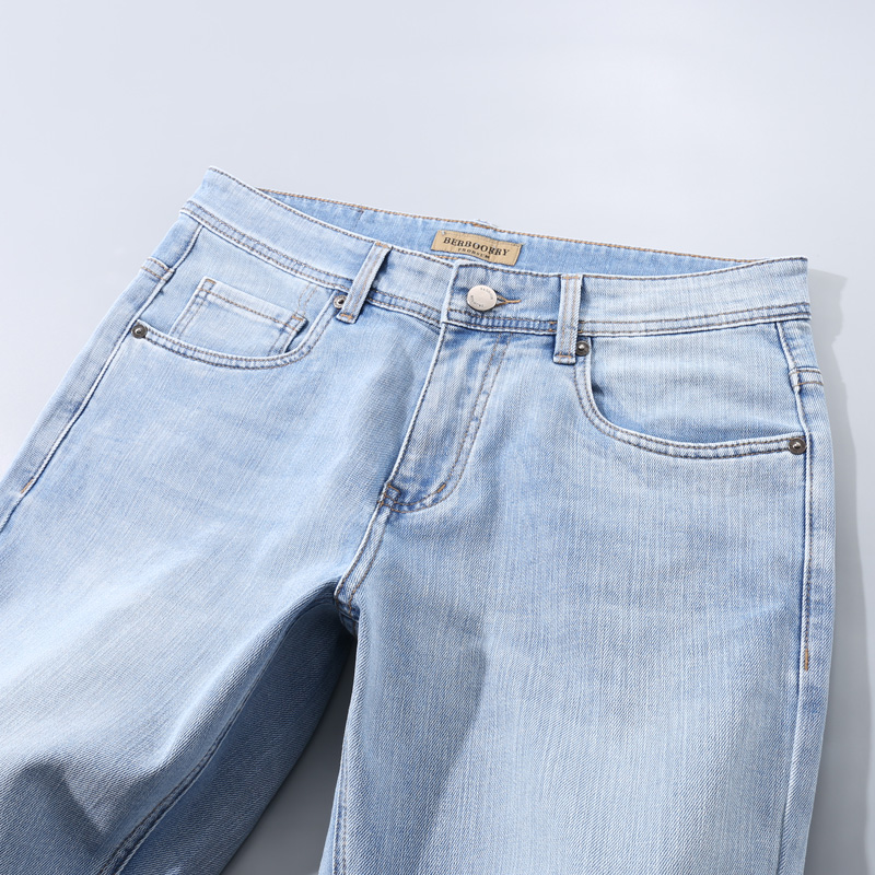 男薄款 浅蓝色洗水高质感斜纹肌理四面弹直筒牛仔裤 春秋季 2025新款