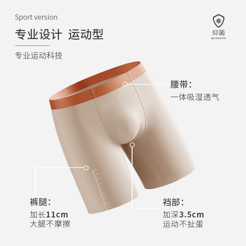 健身不夹臀透气平角四角裤 防磨腿纯棉男士 加长款 运动跑步大码 内裤