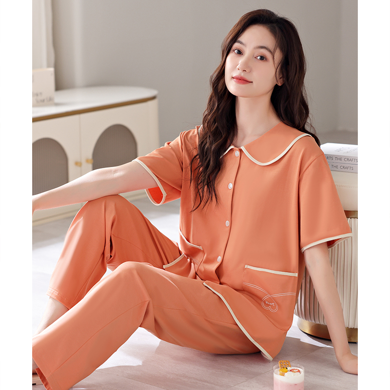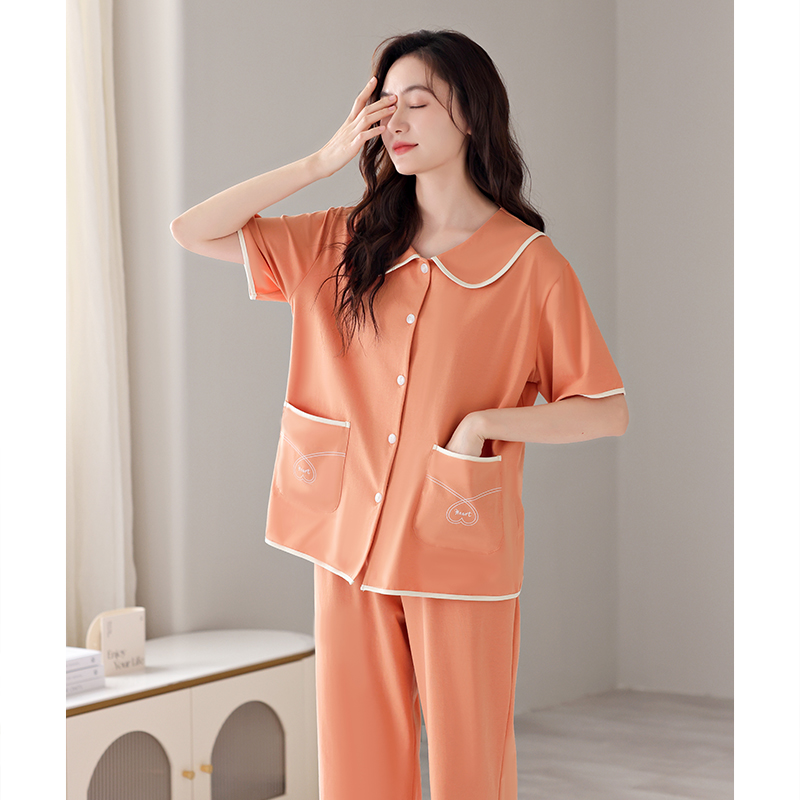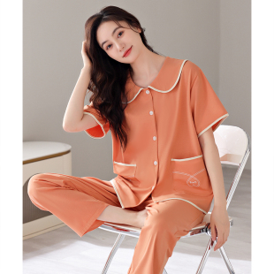 薄款 夏天2025年新款 大码 睡衣女士夏季 开衫 长裤 夏款 家居服 纯棉短袖