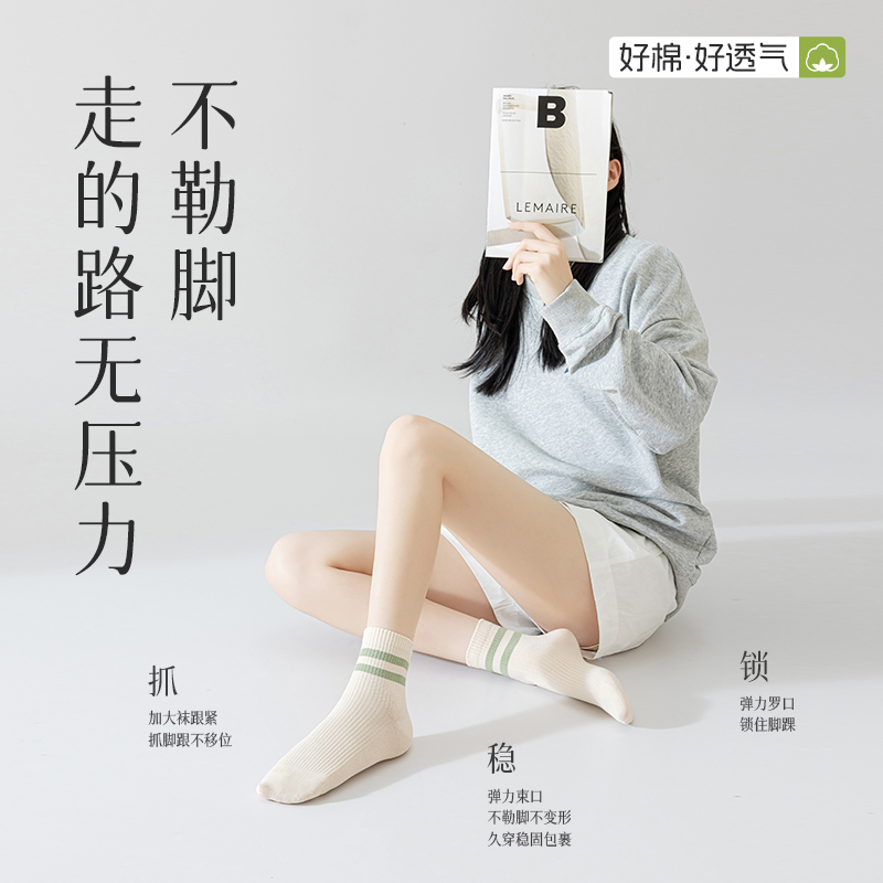 纯棉诸暨短袜吸汗女士袜2024新款 薄款 夏季 雅鹿袜子女中短筒春秋款