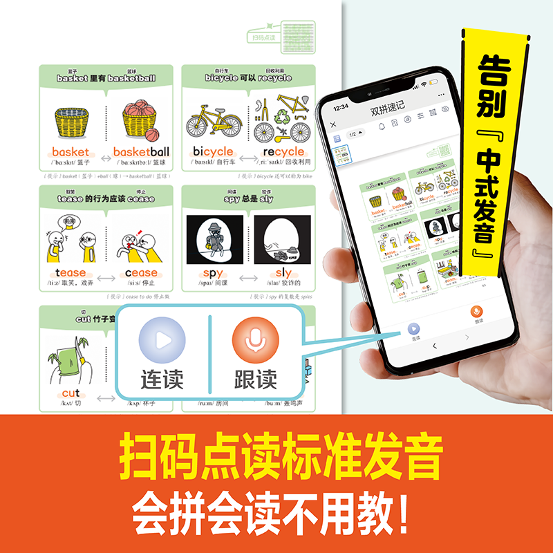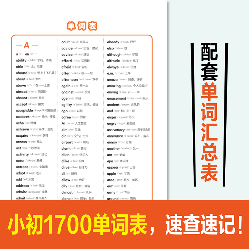开心漫画双拼速记小学初中1700英语单词记背神器小升初中考必背