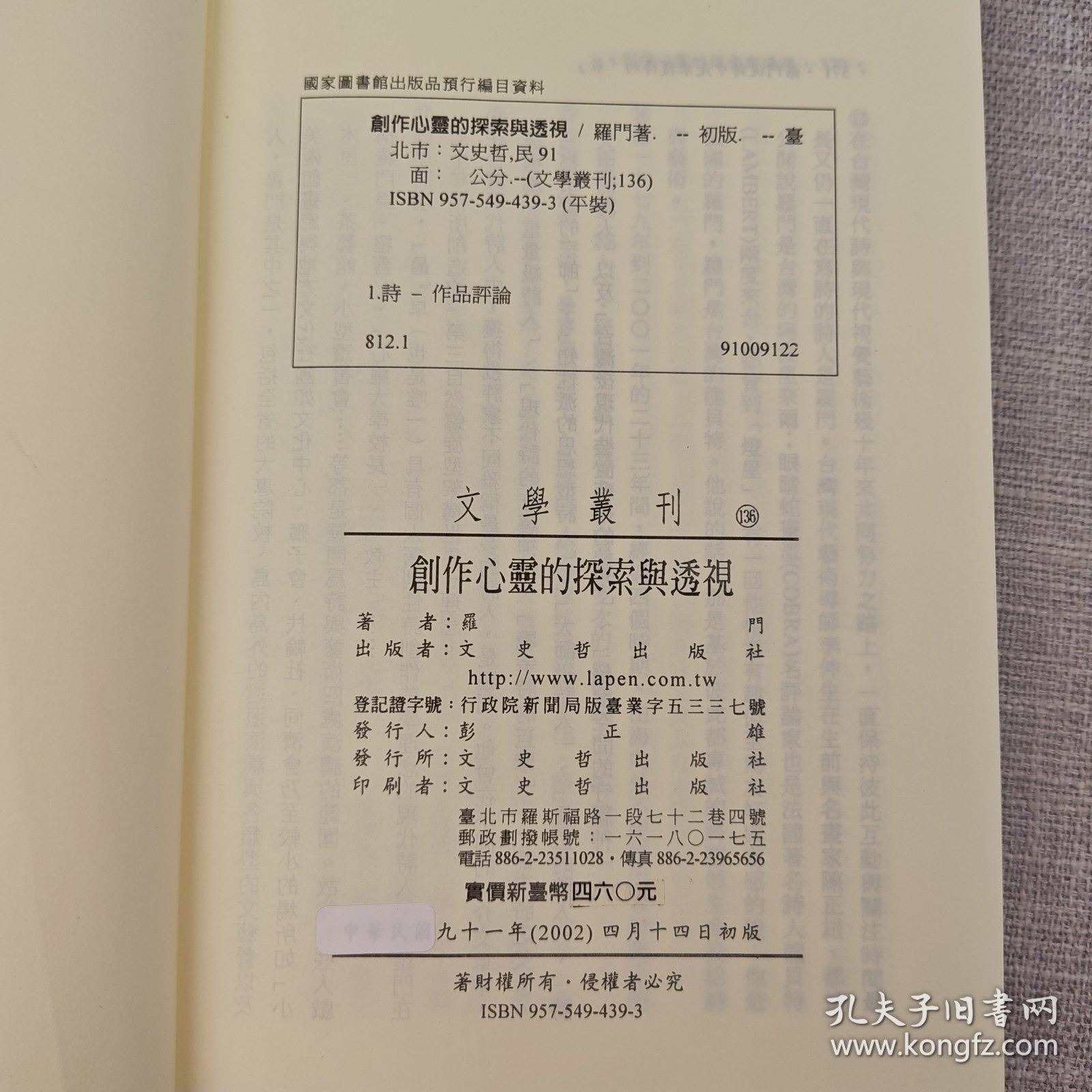 探索與透視 锁线胶订 正版 港台原版 现货 罗门 創作心靈 台湾文史哲版 2002年版
