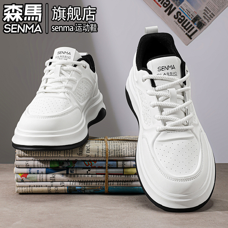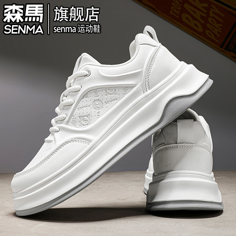 2025新款 真皮软底增高百搭小白潮鞋 秋季 男士 运动休闲板鞋 森马男鞋