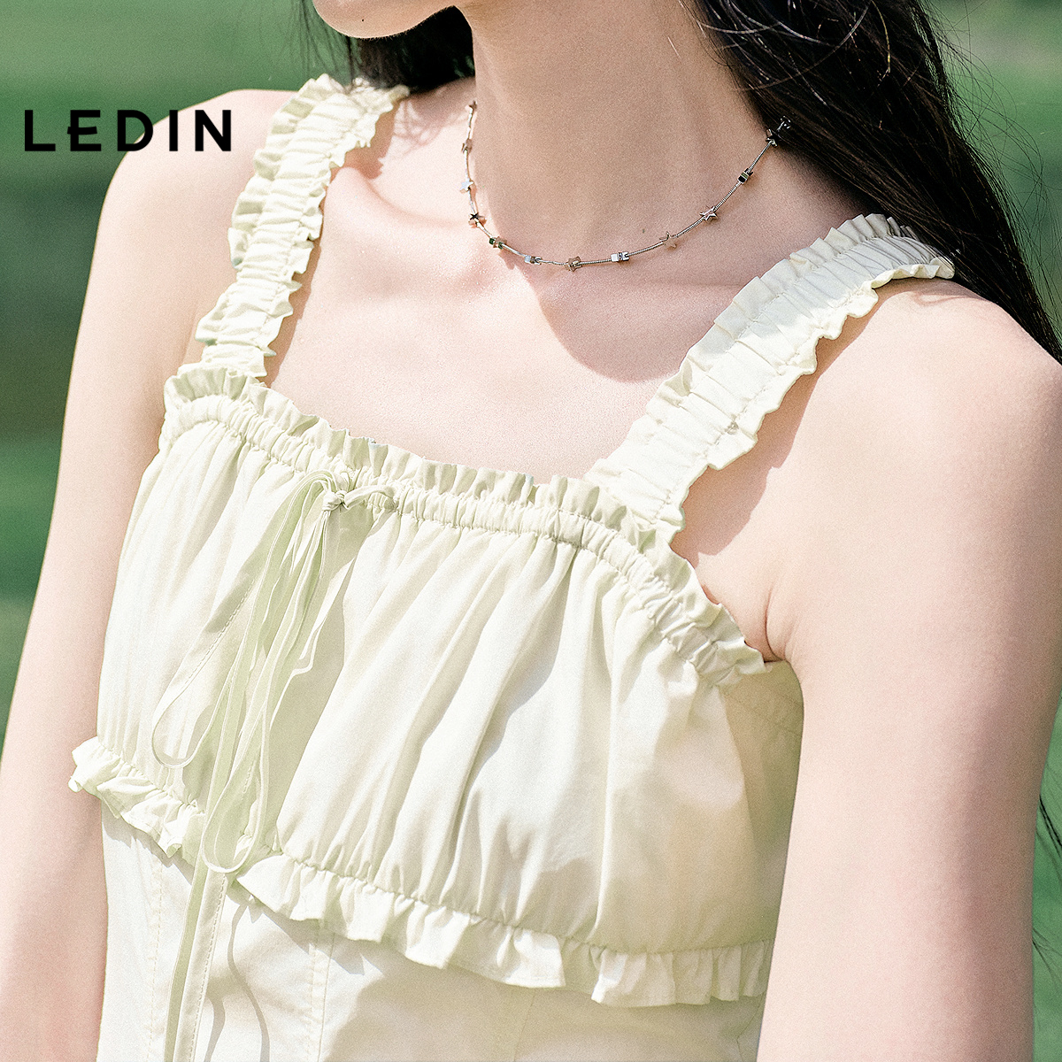新款 拼贴吊带蕾丝连衣裙女25冬季 黑色不规则长裙 WANG白标 LEDIM