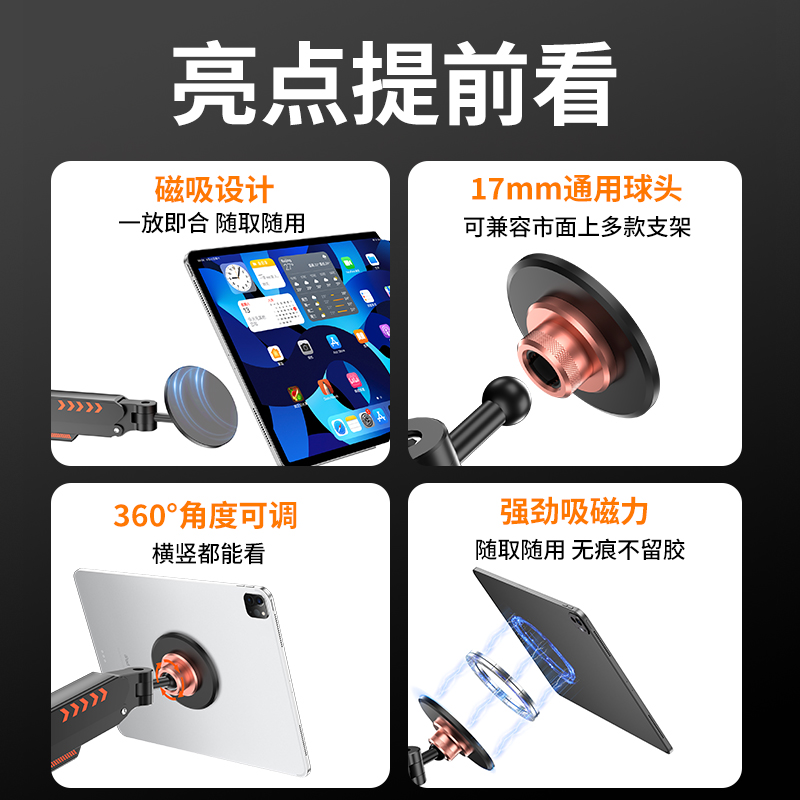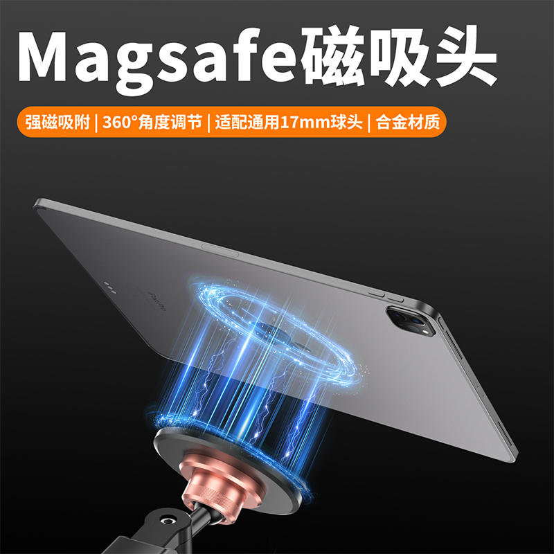 支架VESA悬臂DIY改装 铝合金强磁吸适配通用17mm球头 安卓平板 适配苹果iPad 神器 360°旋转调节支架