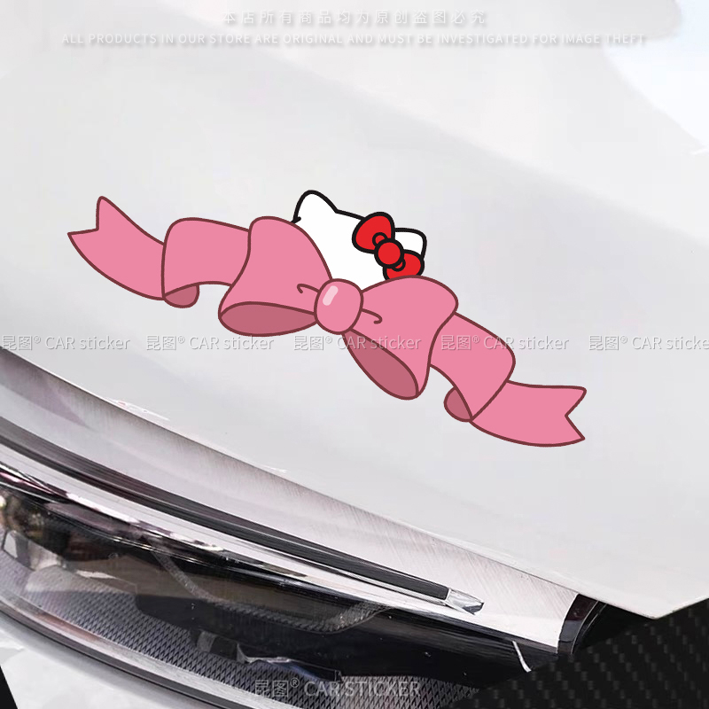 HelloKitty汽车贴纸车身拉花后视镜装 饰电动车行李箱遮挡刮痕贴画