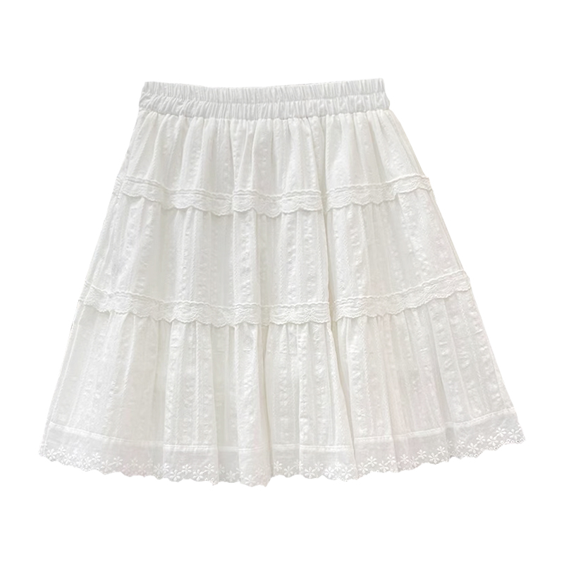 白色蕾丝花边蛋糕裙半身裙女夏季 甜美软妹高腰蓬蓬裙短裙 2025新款