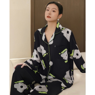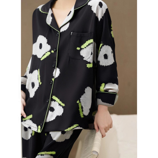 田园风家居服可外穿春秋款 丝绸缎面高级感夏季 长裤 冰丝睡衣女长袖