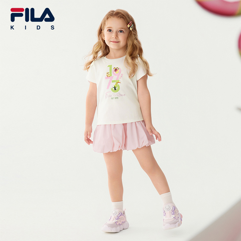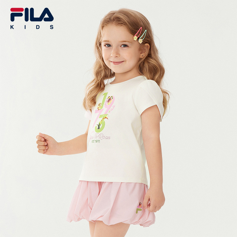舒爽棉 女小童短袖 FILA斐乐儿童童装 新款 T恤 上衣2025年秋季