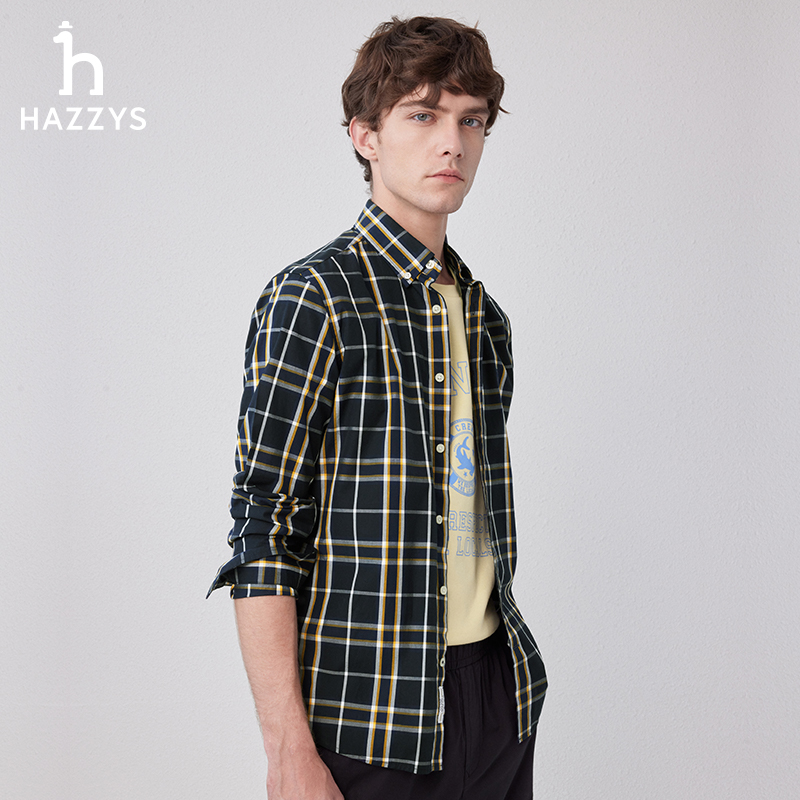 春秋新品 撞色格纹纯棉衬衫 男士 经典 外套 时尚 Hazzys哈吉斯奥莱男装