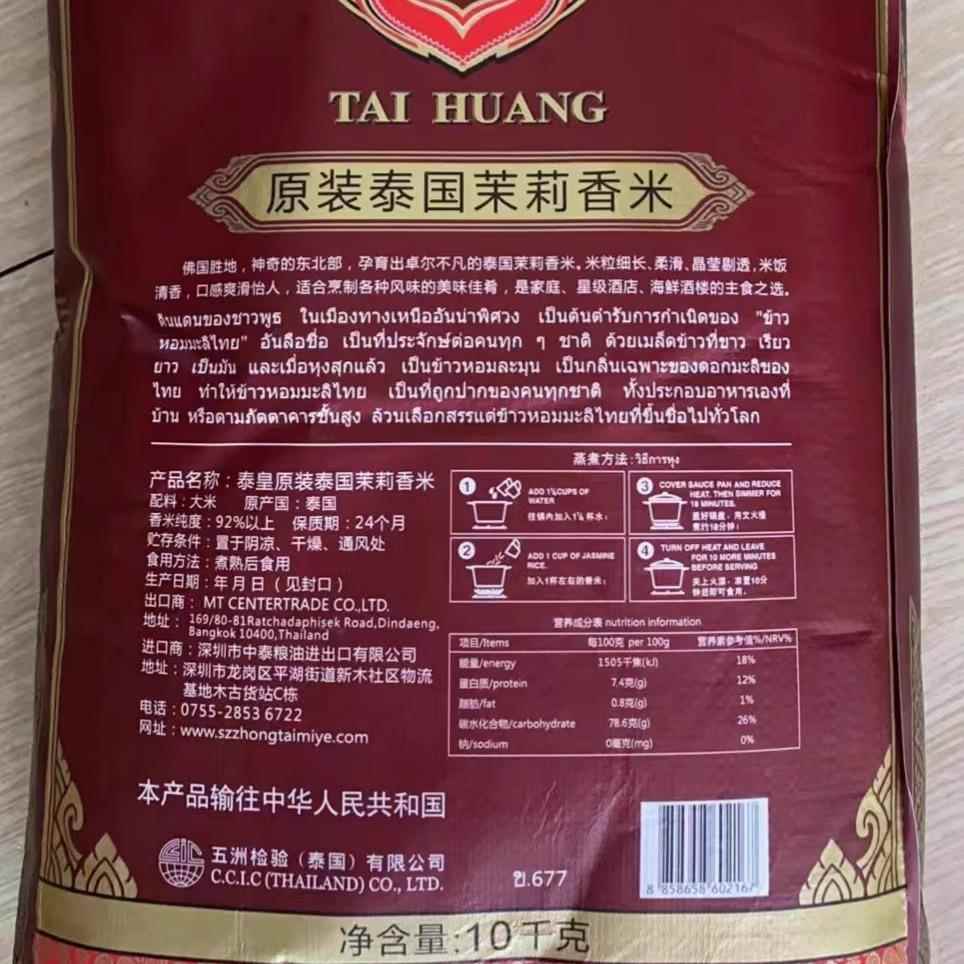 泰皇原装 进口泰国茉莉香米猫牙米10kg大米新米长粒香米20斤装