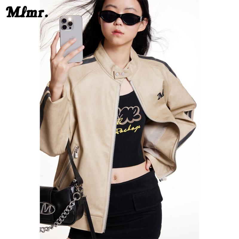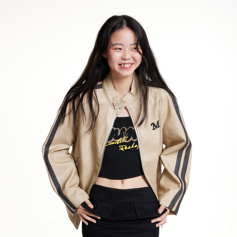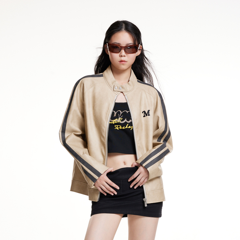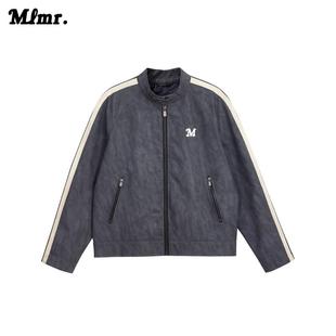 MLMRoutlets外套男春季 字母刺绣潮简约复古风立领PU夹克男女男装