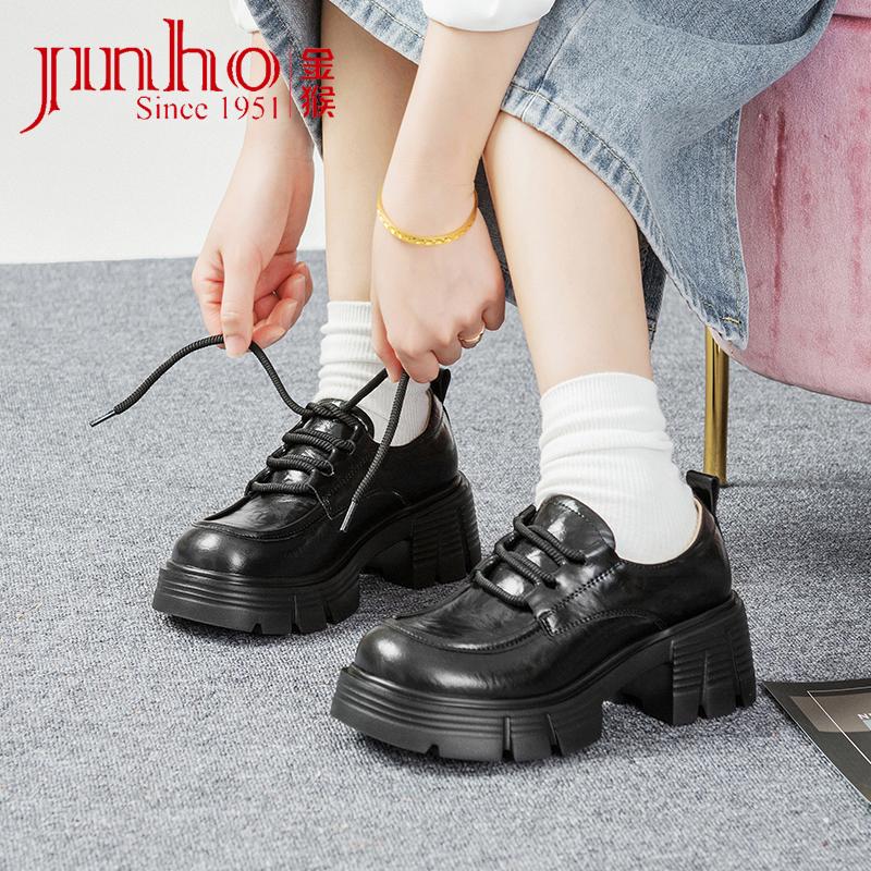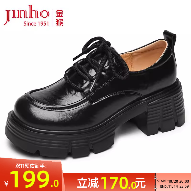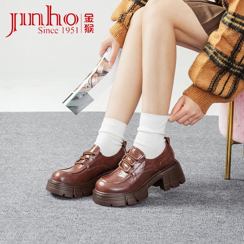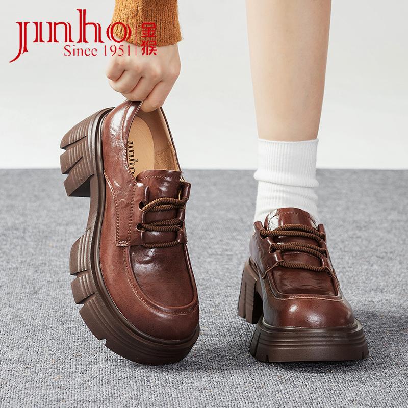 真皮女鞋 金猴粗跟厚底乐福鞋 复古英伦风小皮鞋 新款 女2025春秋季
