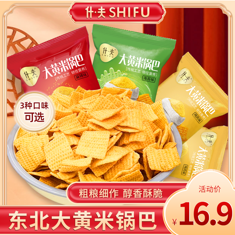 什夫大黄米锅巴烤肉味海苔味麻辣味传统工艺休闲酥脆追剧小零食