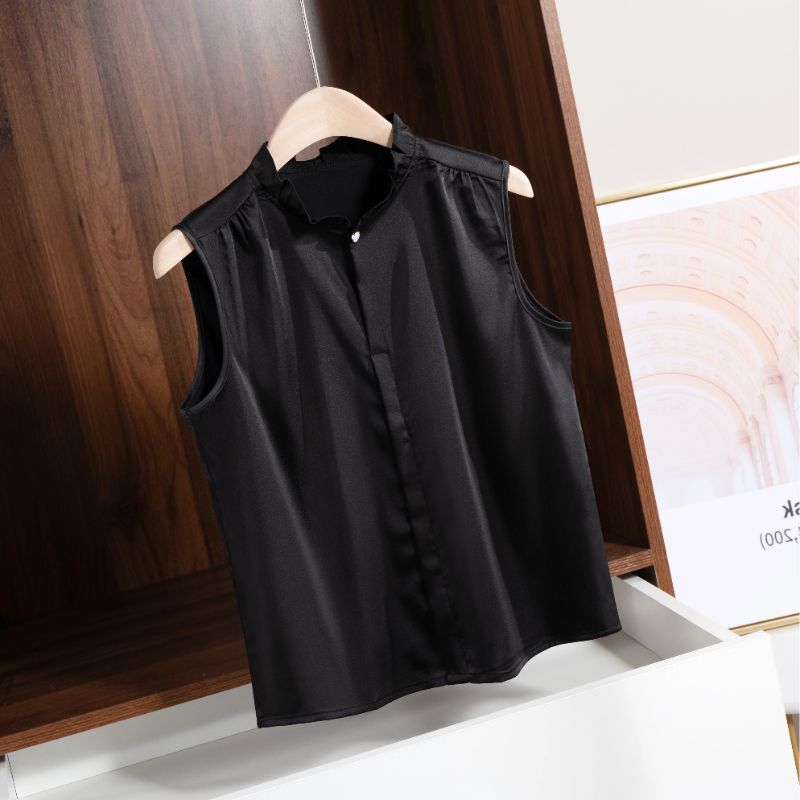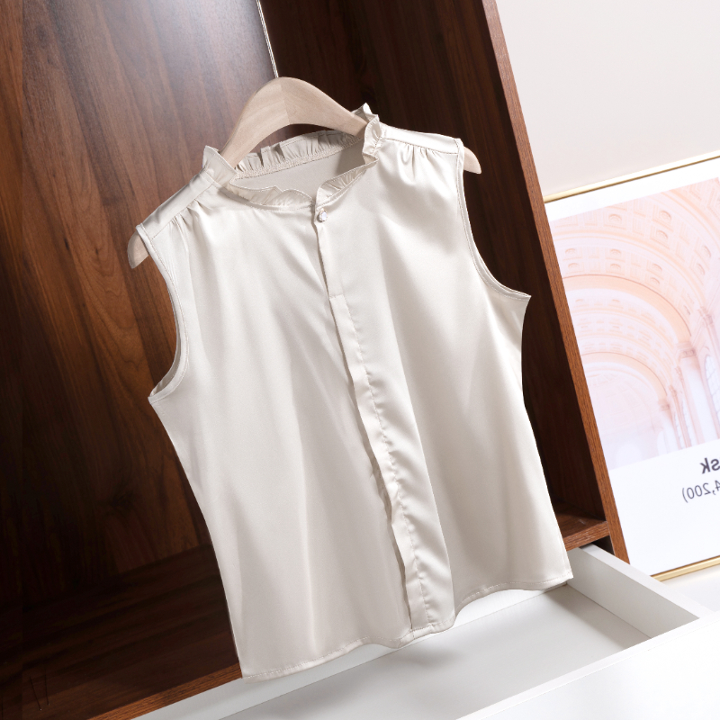 背心上衣花边叠穿 夏内搭打底西装 轻奢高级感仿真丝缎面衬衫 女无袖