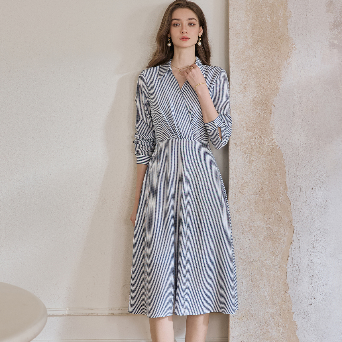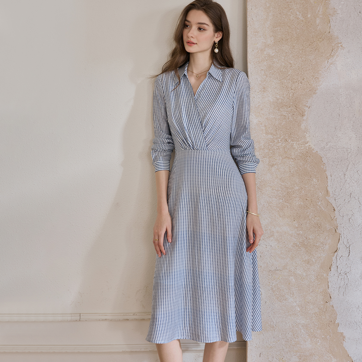中长款 秋冬百褶裙2025春新款 A字裙长袖 气质修身 打底连衣裙 淑女装