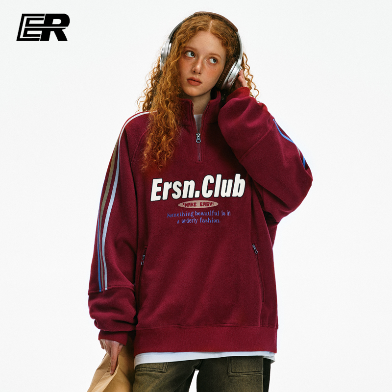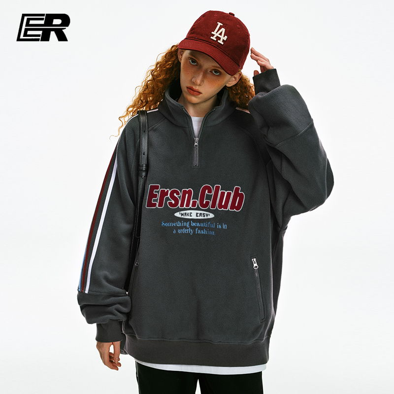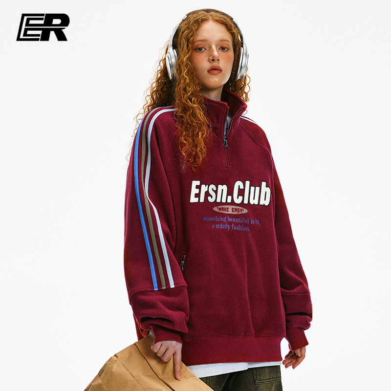 ER半拉链条纹卫衣春秋撞色立领美式 潮牌户外休闲情侣外套男女同款