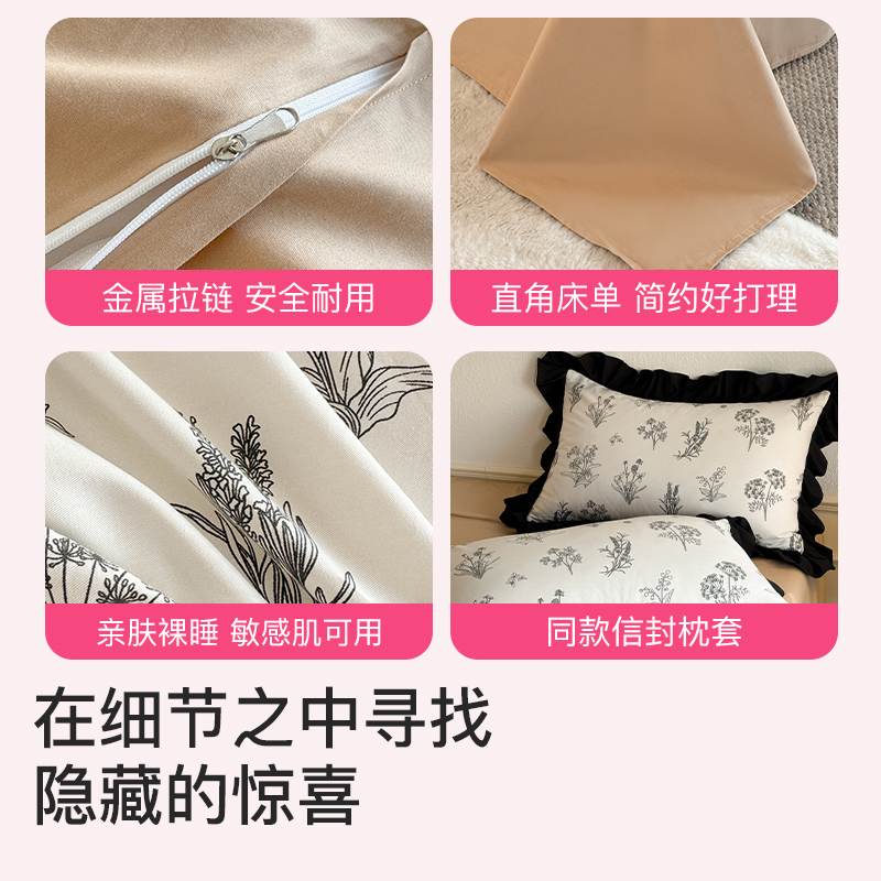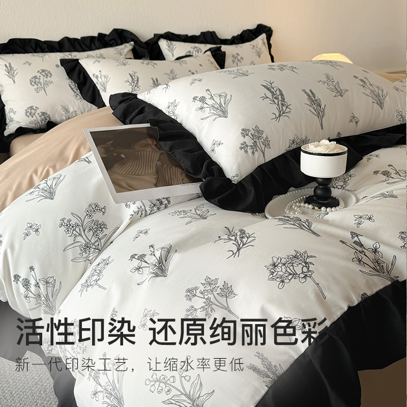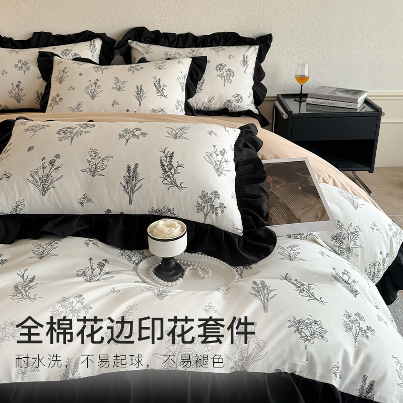 洁丽雅高档花边公主风床上四件套纯棉全棉2025新款 被套床单三件套