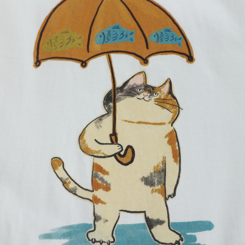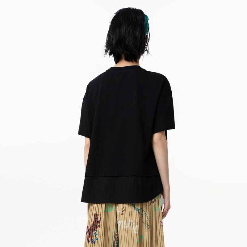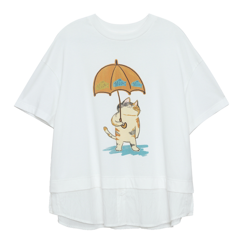 T恤女 .FUN系列圆领猫咪印花假两件短款 MOVEUP幻走2025夏季 新款