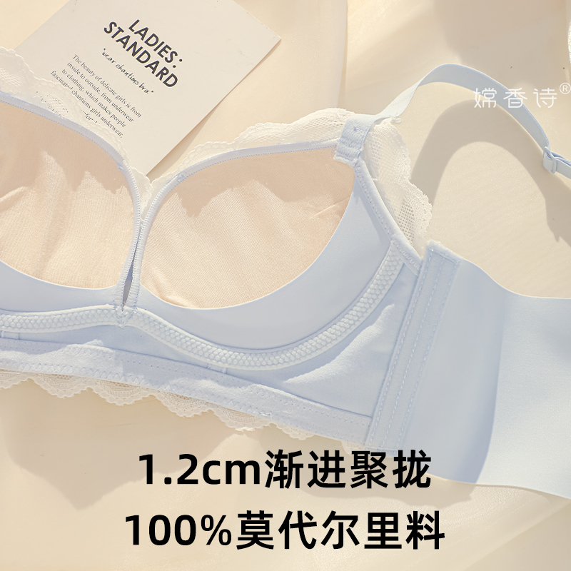 聚拢内衣女小胸显大收副乳防下垂100%超软莫代尔舒适蕾丝文胸套装