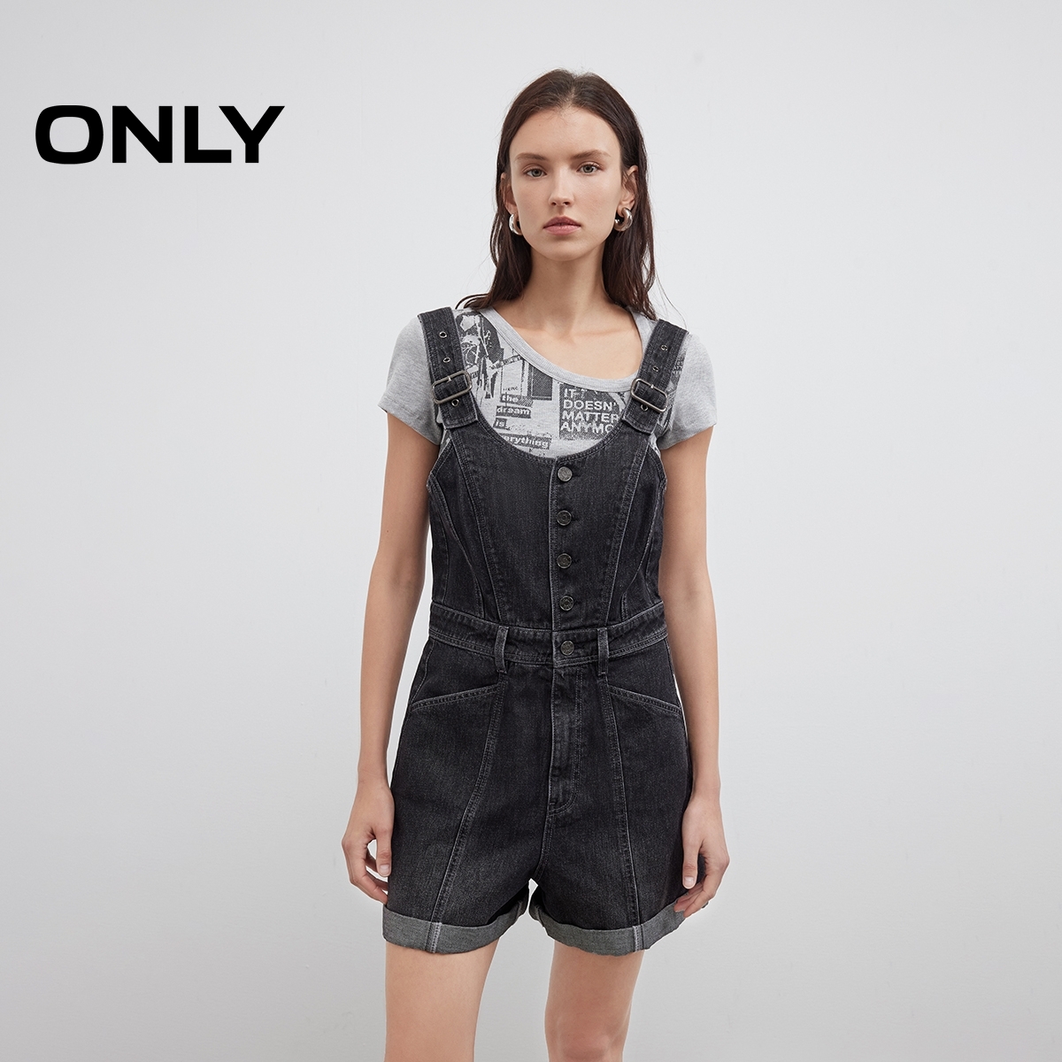 牛仔裤 莱赛尔可调节宽肩带A字显瘦背带短裤 女 新款 ONLY2025夏季