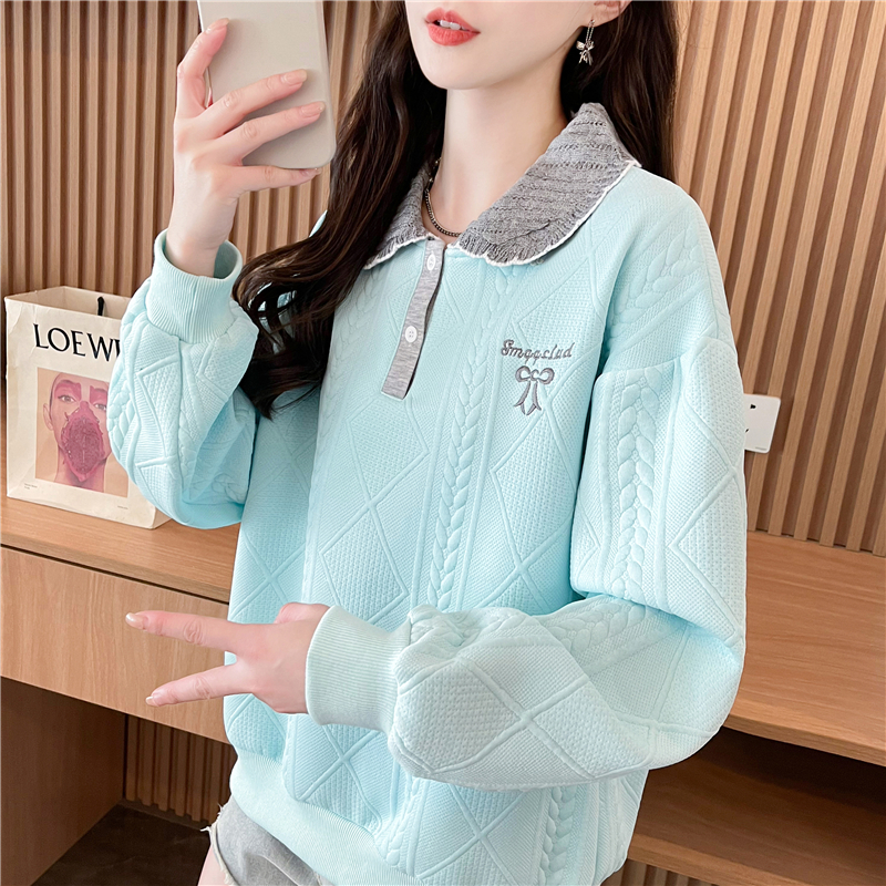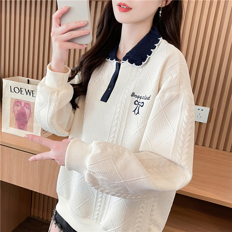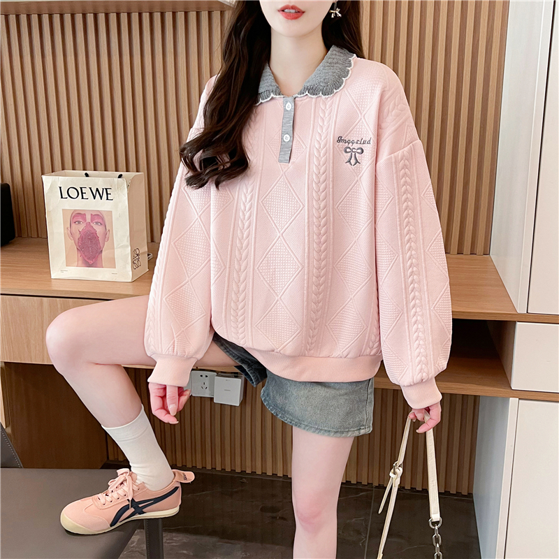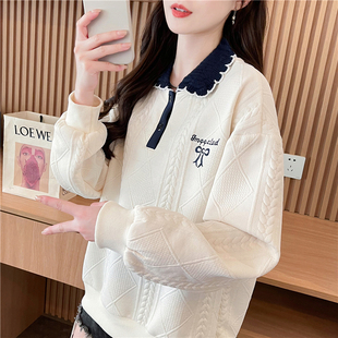 花边毛衣领假两件上衣外套 宽松薄款 polo领卫衣女2025新款 春秋韩版