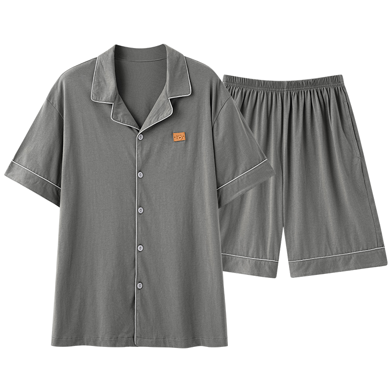 短裤 短袖 大码 简约纯色家居服套装 猫人睡衣男纯棉夏季 2025新款 男士