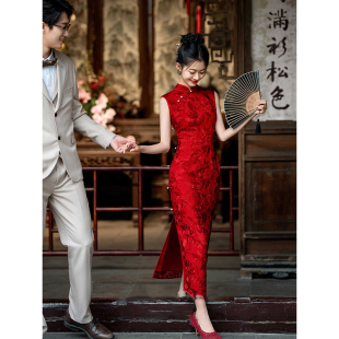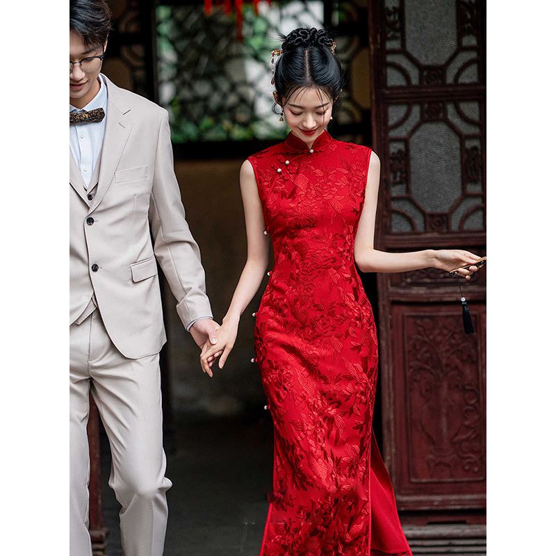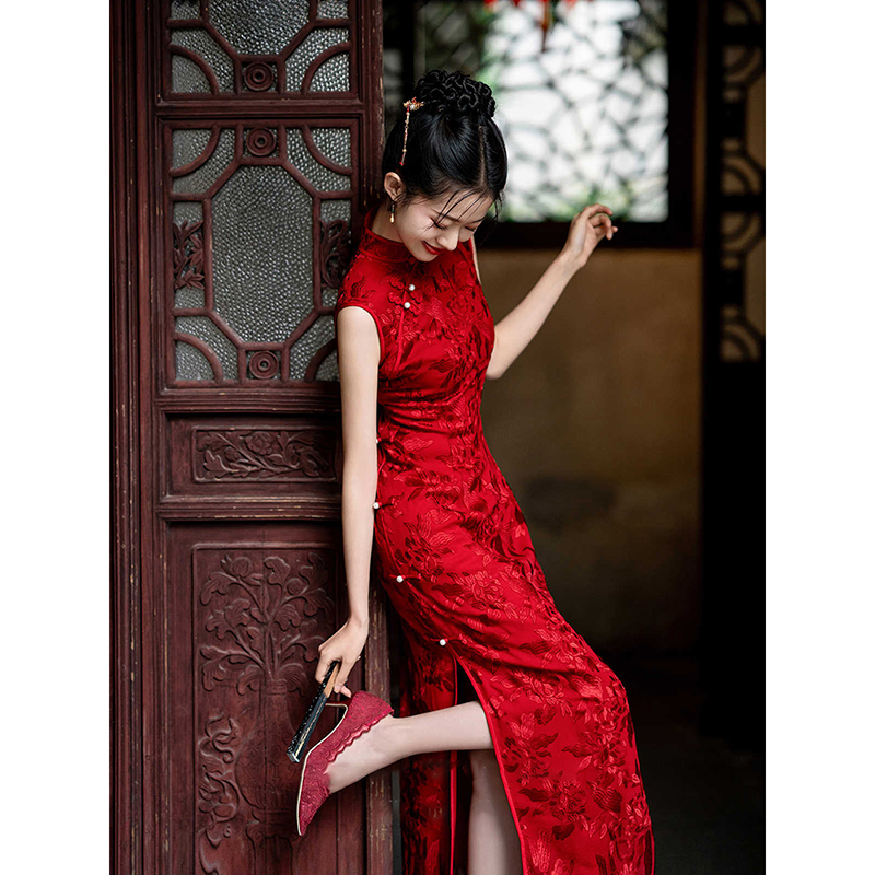 新娘敬酒订婚礼服高级感 复古红色真丝旗袍女2025新款 _绯光 新中式