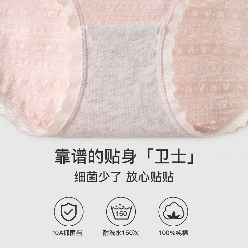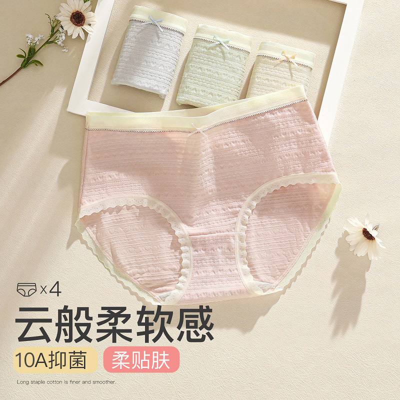 4条装 芬腾里裆10A级抑菌全棉纯棉裆女士内裤 弹力无痕透气三角裤