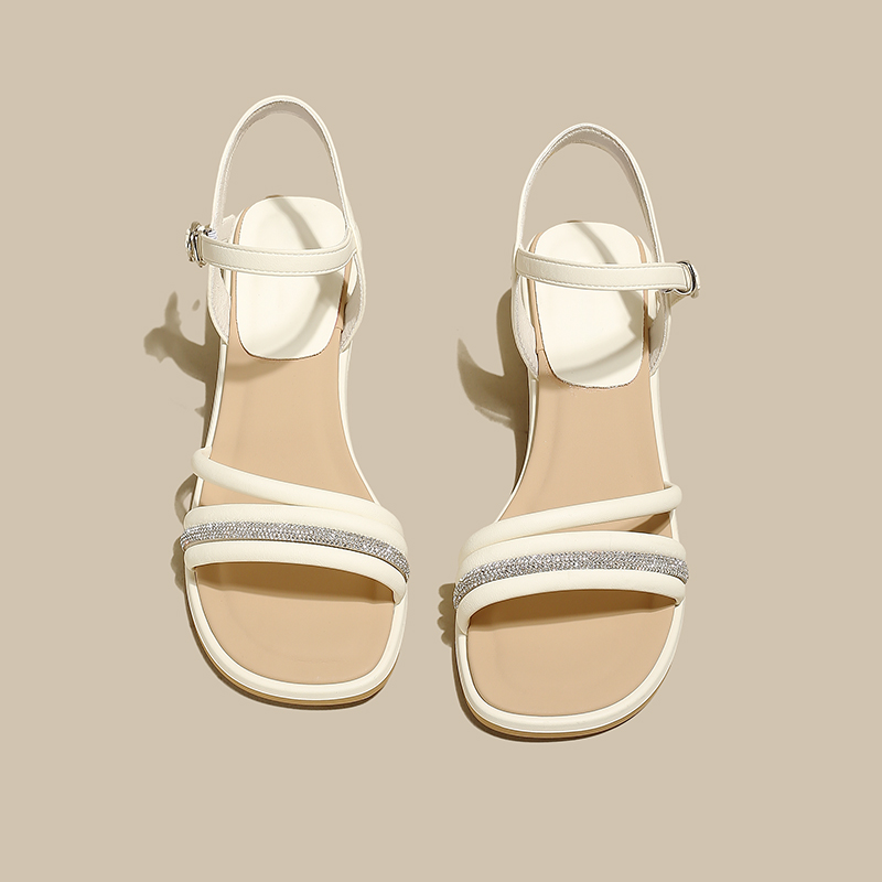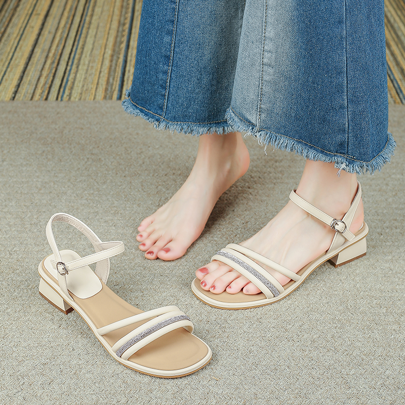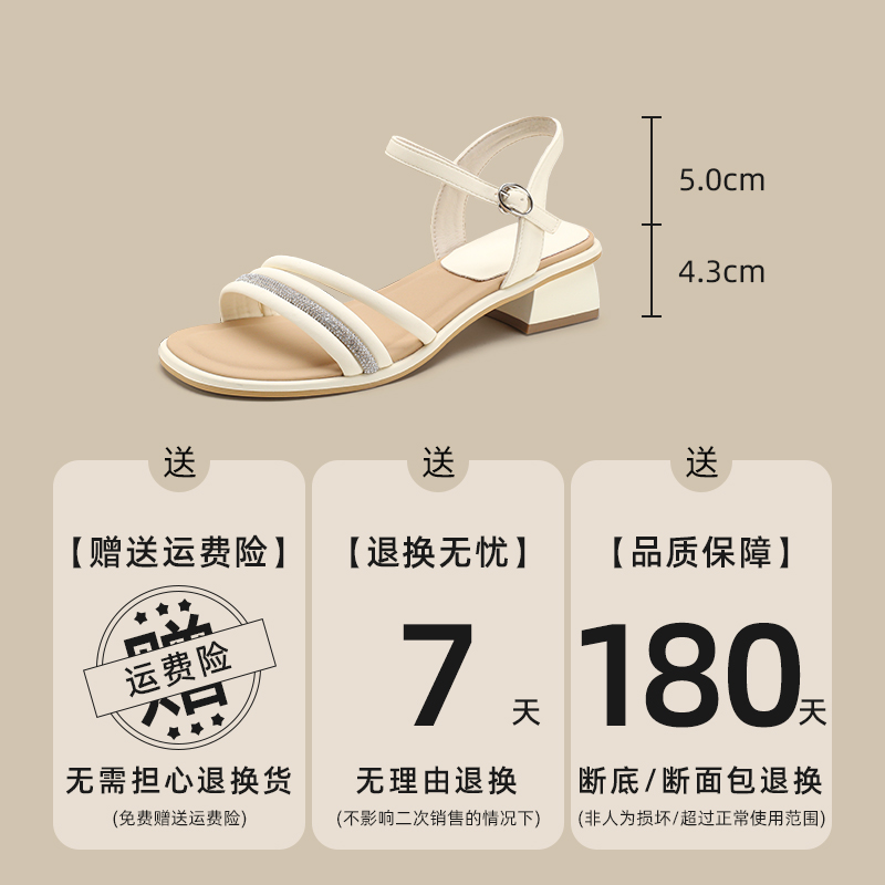 百搭外穿配裙子不累脚一字带粗跟凉鞋 法式 夏季 女2025新款 后空凉鞋
