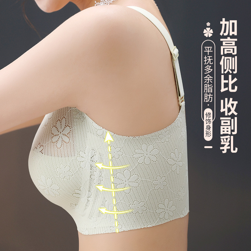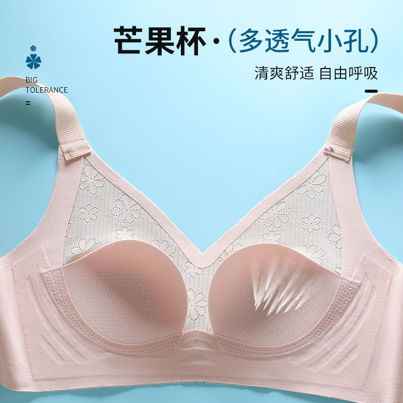 芒果杯软支撑美背文胸 薄款 无痕蕾丝轻薄透气大码 内衣大胸显小夏季