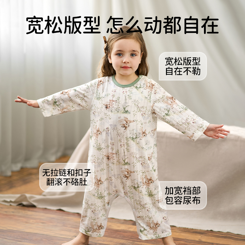 连体衣家居服 纯棉男女孩空调服宝宝2025新款 欧孕儿童睡衣夏季 薄款