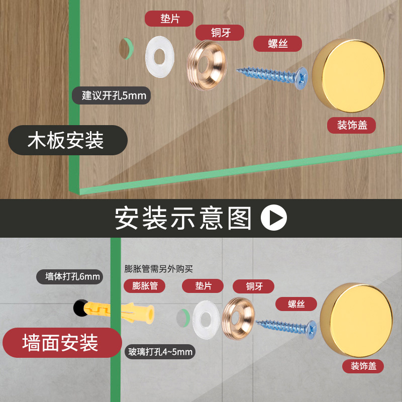螺丝盖帽圆形不锈钢装 饰盖遮丑盖亚克力广告钉卡扣镜子上墙固定器