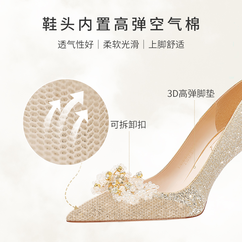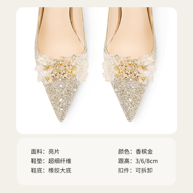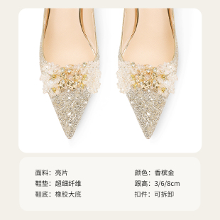 新娘禾秀主婚纱两穿高跟鞋 春夏季 不累脚 女2025新款 亮片水晶结婚鞋