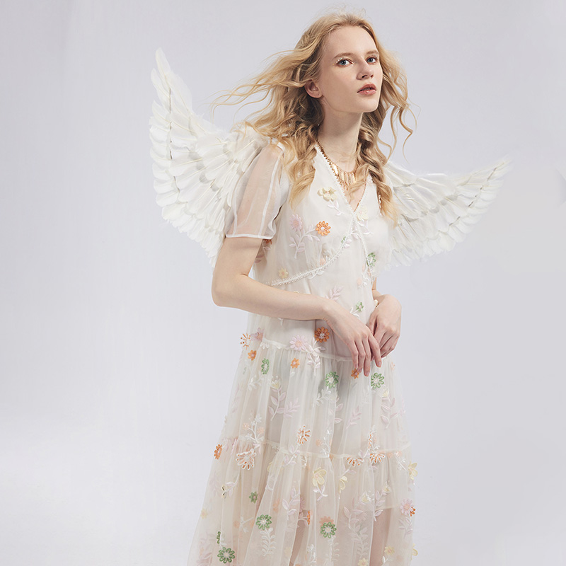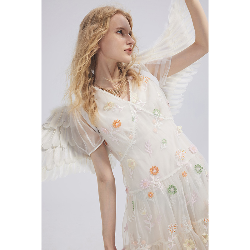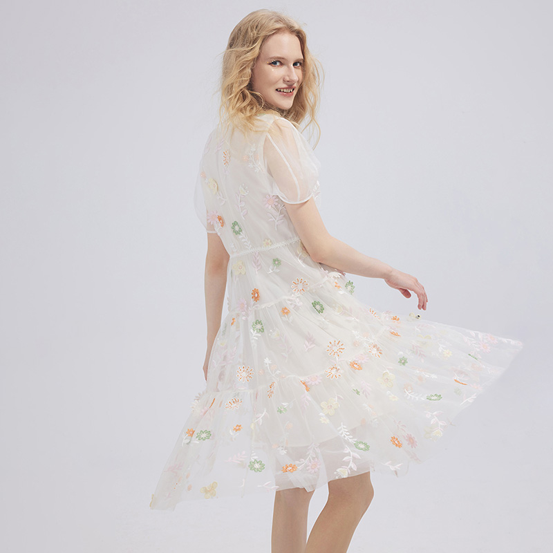 连衣裙712322001 蕾丝花边短袖 裂帛outlets春季 新波西米亚风泡泡袖